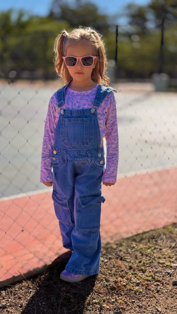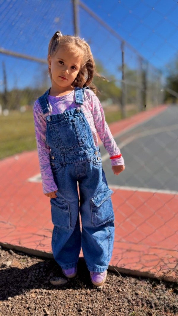 Jardinero de jeans corte wide cargo color celeste localizado.