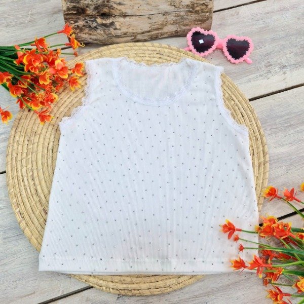 Musculosa de micro morley suave y adaptable, con detalles de strass que aportan brillo sutil y puntilla en las terminaciones para un toque delicado y femenino. Cómoda, canchera y perfecta para looks frescos de todos los días.
