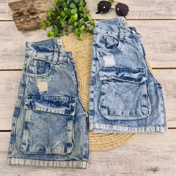 Bermuda de jean rígido corte baggy, con bolsillos cargo, un diseño súper canchero y en tendencia.