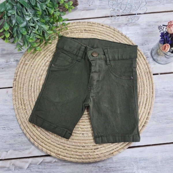 Bermuda clásica color verde seco confeccionada en gabardina de excelente calidad, detalle de cintura con elástico regulable y bolsillos traseros ¡muy canchera y super combinable!