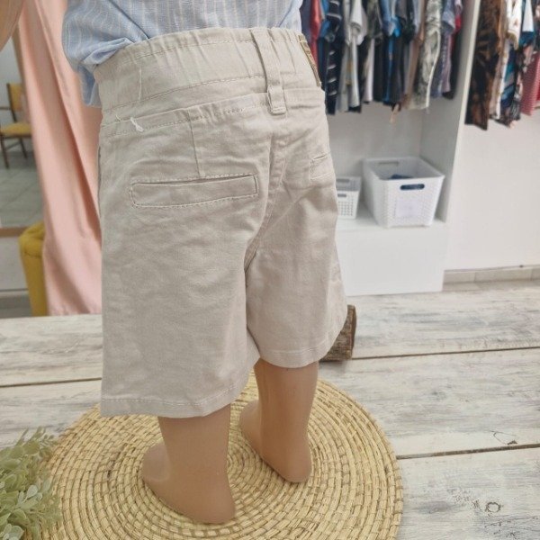 Bermuda de gabardina en color hueso, con corte baggy y cintura con elástico para mayor comodidad. Su tela resistente y suave la hace ideal para el día a día, ofreciendo un look moderno, relajado y súper combinable.