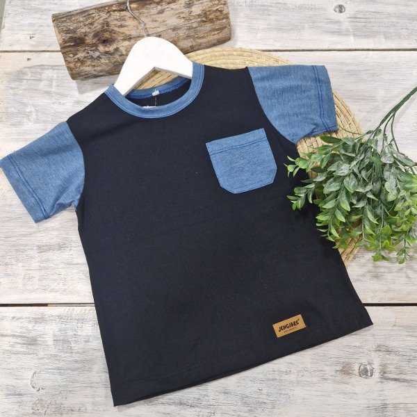 Remera confeccionada en jersey de algodón de excelente calidad. Detalles muy cancheros de cuello, mangas y bolsillo en tono aero