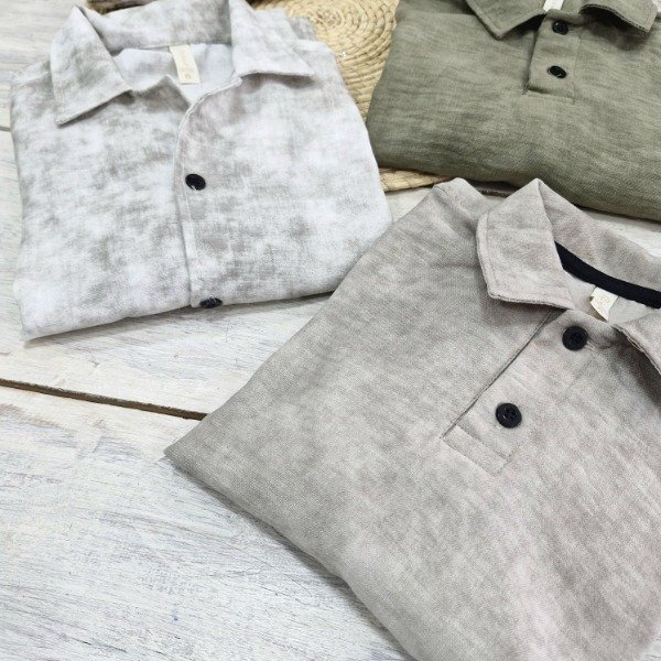 Este conjunto está confeccionado en lino batik color habano, ideal para los días de calor.