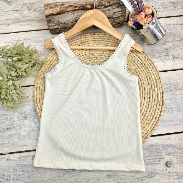 Esta encantadora musculosa para niña, confeccionada en morley de excelente calidad, es la prenda perfecta para combinar en un outfit de año nuevo. Su tejido suave y cómodo asegura que tu pequeña se sienta libre y a gusto durante todo el día. El delicado detalle de puntilla añade un toque de dulzura y elegancia, haciendo que esta musculosa sea ideal para las celebraciones de Año Nuevo. ¡Perfecta para crear un look festivo y lleno de estilo en estas fiestas!